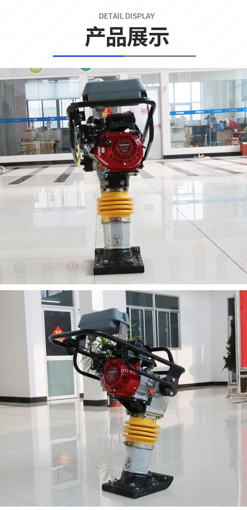 用于公路、市政、電信、煤氣、供水、鐵路等部門對工程基礎(chǔ)和溝槽回填土的夯實(shí)。