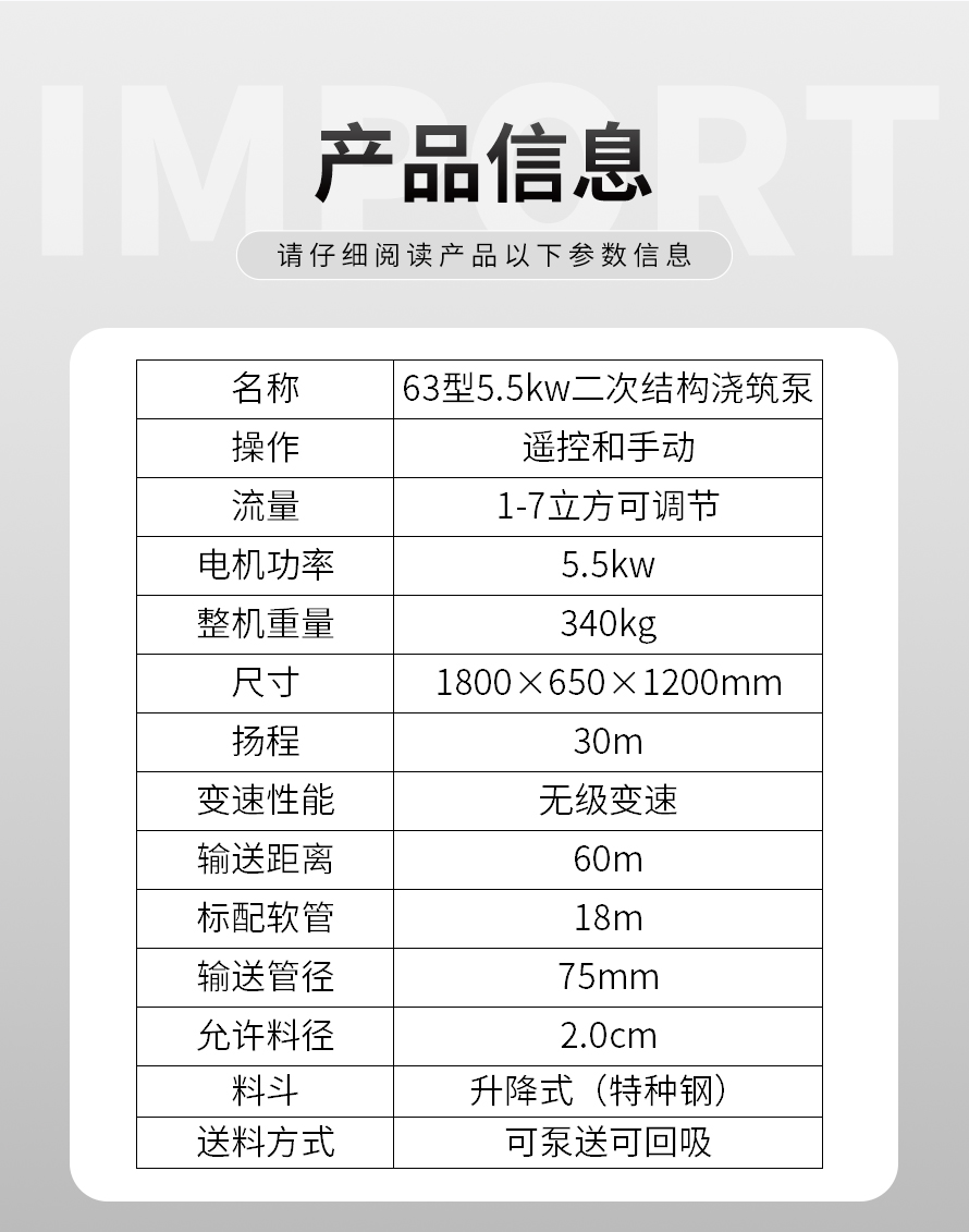 5.5kw微型二次構造澆筑泵